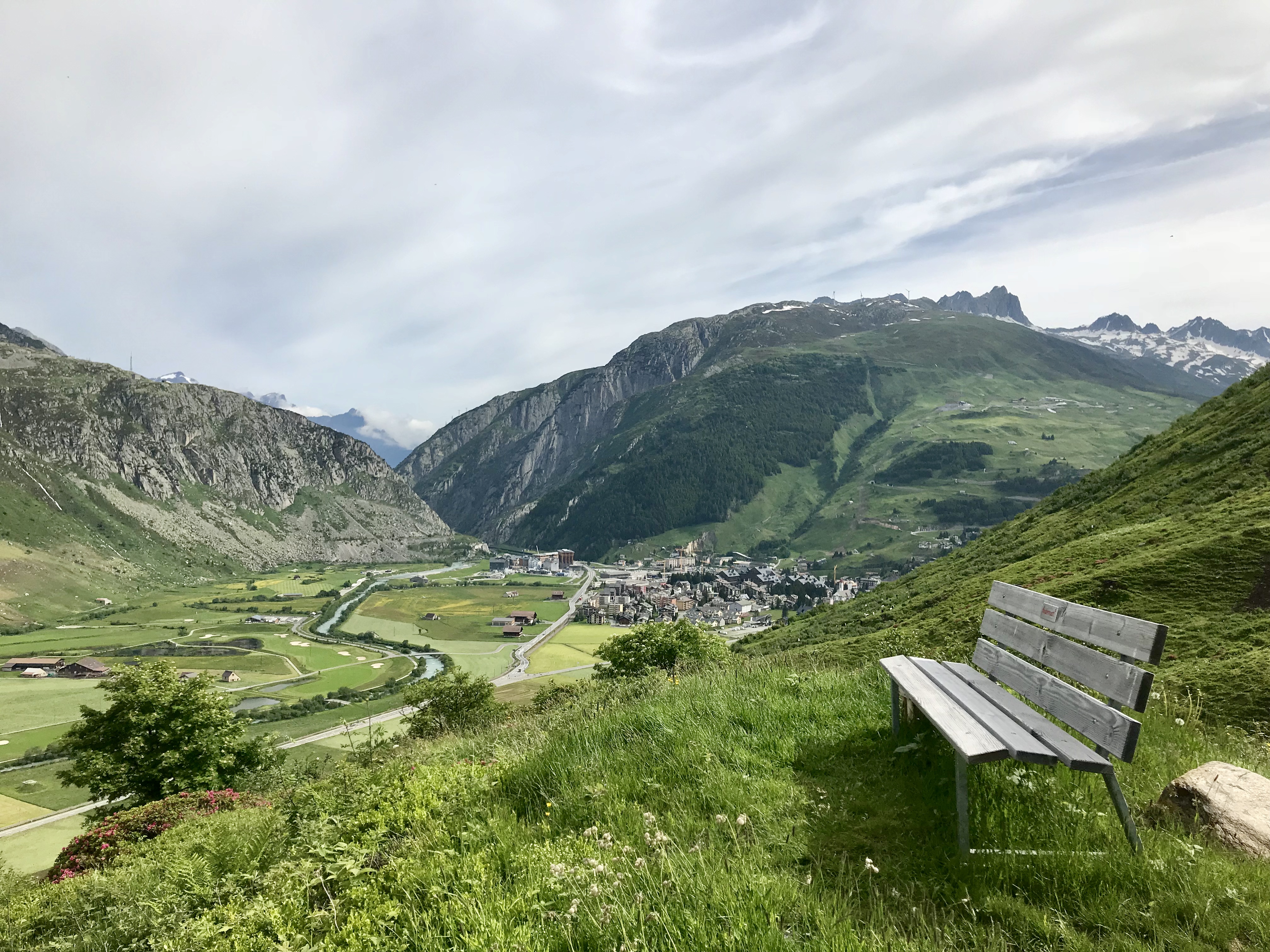 Die Ferienregion Andermatt bietet zahlreiche atemberaubende Aussichtsplätze. Viele davon sind mit einer gemütlichen Sitzbank ausgestattet – perfekt, um die Stille der Natur zu geniessen und das Panorama zu bewundern.