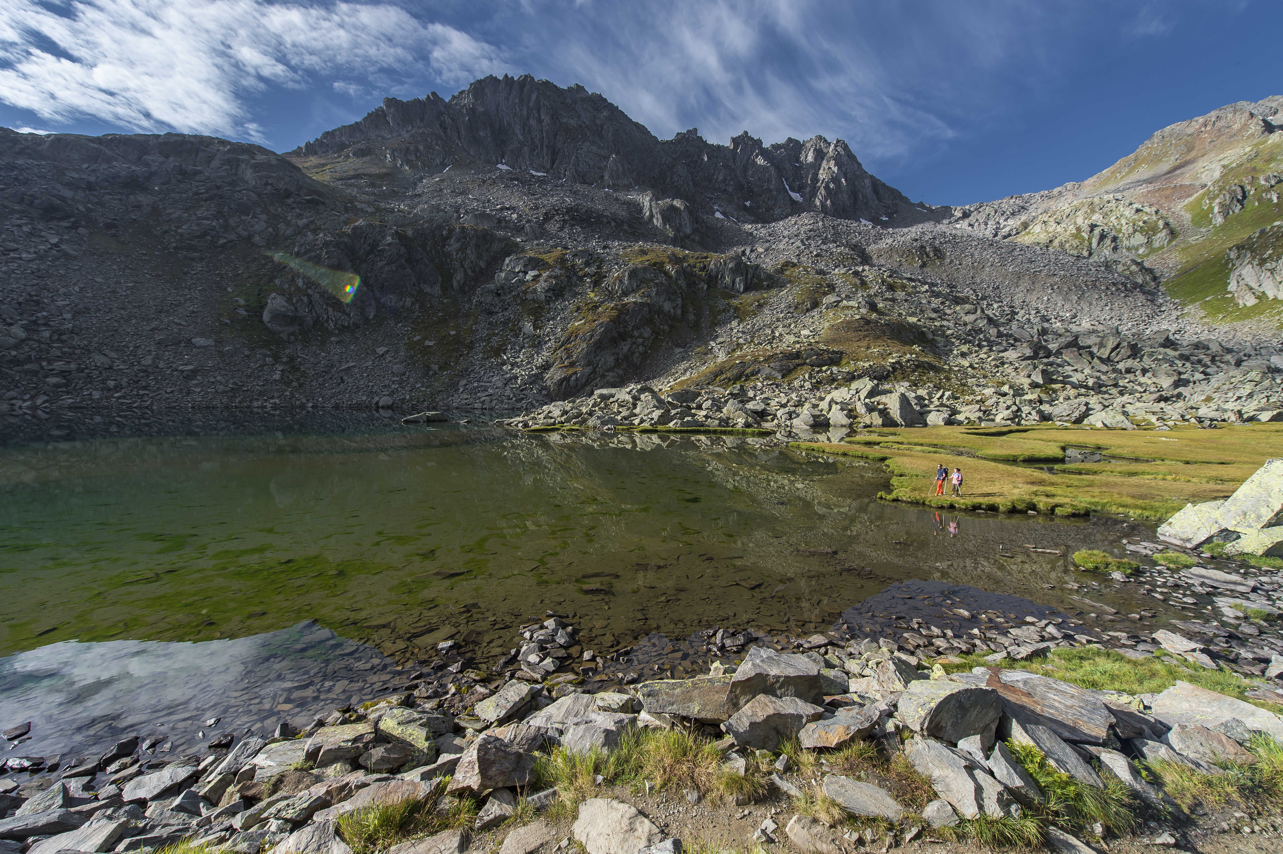 Der Beginn ist steil und recht luftig, es geht über eine markante Rippe in gestuftem Gelände. Dann folgen abwechselnd plattige Felsen und Grasbänder. Packend ist der Ausblick über die wilde Schlucht mit der Teufelsbrücke und den verschiedenen Verkehrswegen, die immer kleiner werden, je höher du steigst. Nach einer längeren ungesicherten Linksquerung gibt es eine Rinne und ein ausgesetztes Felseck. Danach bist du schon fast am Ziel: Über eine senkrechte Leiter steigst du am Schluss zum Teufelstalboden auf. Nun bietet sich eine Pause an, nur ein paar Höhenmeter weiter oben gibt es einen Rastplatz. Von hier aus siehst du die Granitzacken des Salbitschijen. Nach Andermatt zurück gelangst du über die Wanderwege Chilchenberg oder Nätschen, mit der Matterhorn Gotthard Bahn oder mit der Gondelbahn.