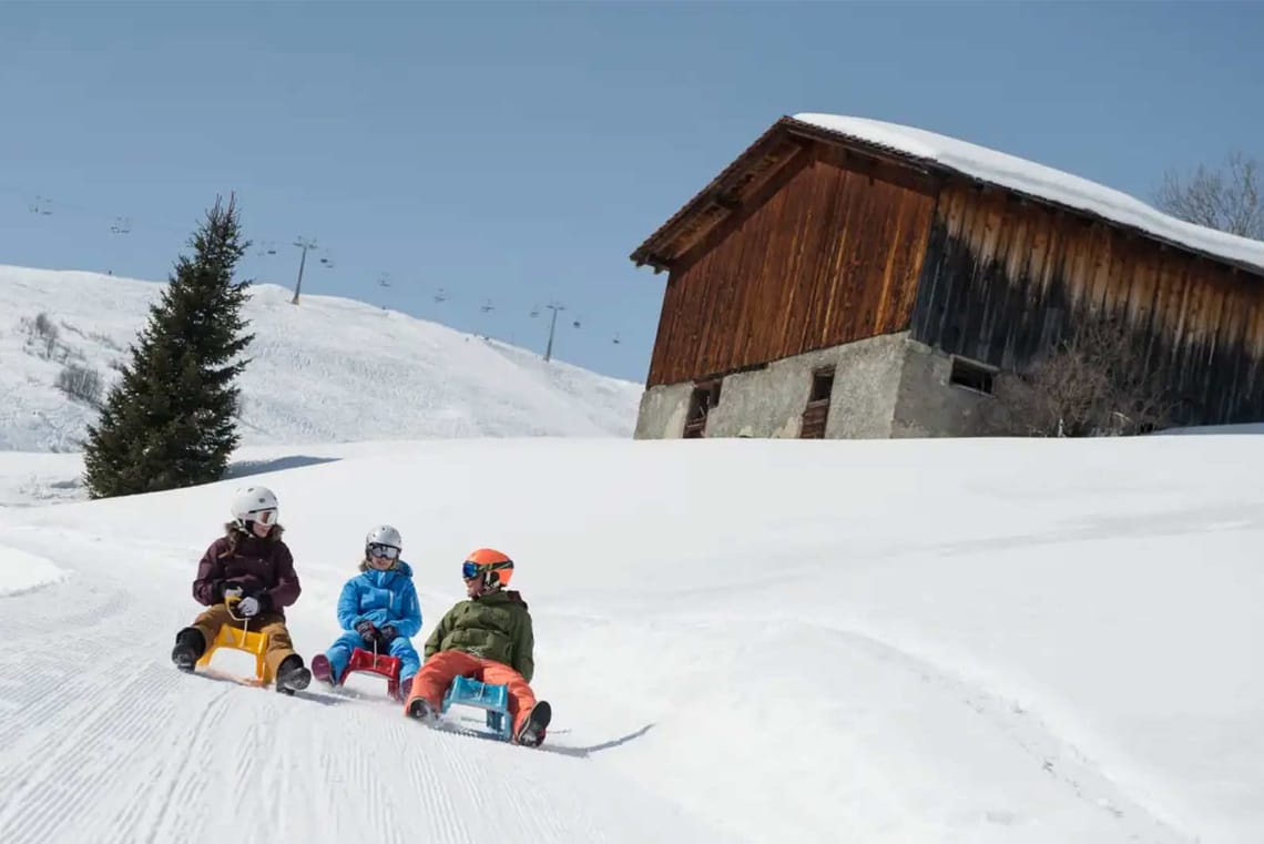 Du liebst die Ruhe und Abgeschiedenheit? Dann bist du richtig in Mompé Medel bei Disentis. Nach ca. 45 Minuten Aufstieg schlittelst du durch einsame Weiler mit herrlicher Aussicht auf das verschneite Tal und seine Wälder.
