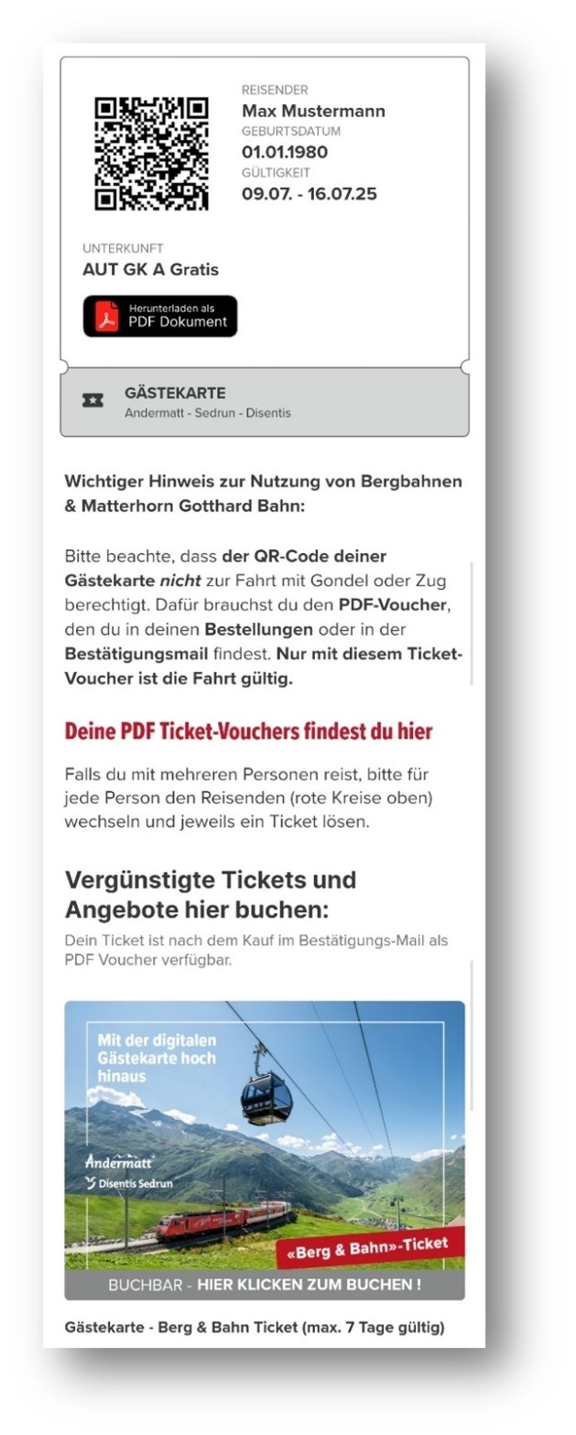 • Gruppengästekarten Andermatt: Bestellung per E-Mail an info@andermatt.swiss