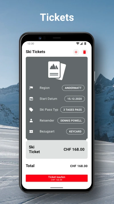 Achat de billets facilité grâce à la NFC et à la carte clé En achetant un forfait de ski, vous pouvez maintenant facilement lire l'ID de la carte clé via NFC et ne plus avoir à la saisir (À l'avenir, cela fonctionnera également avec le Swisspass).