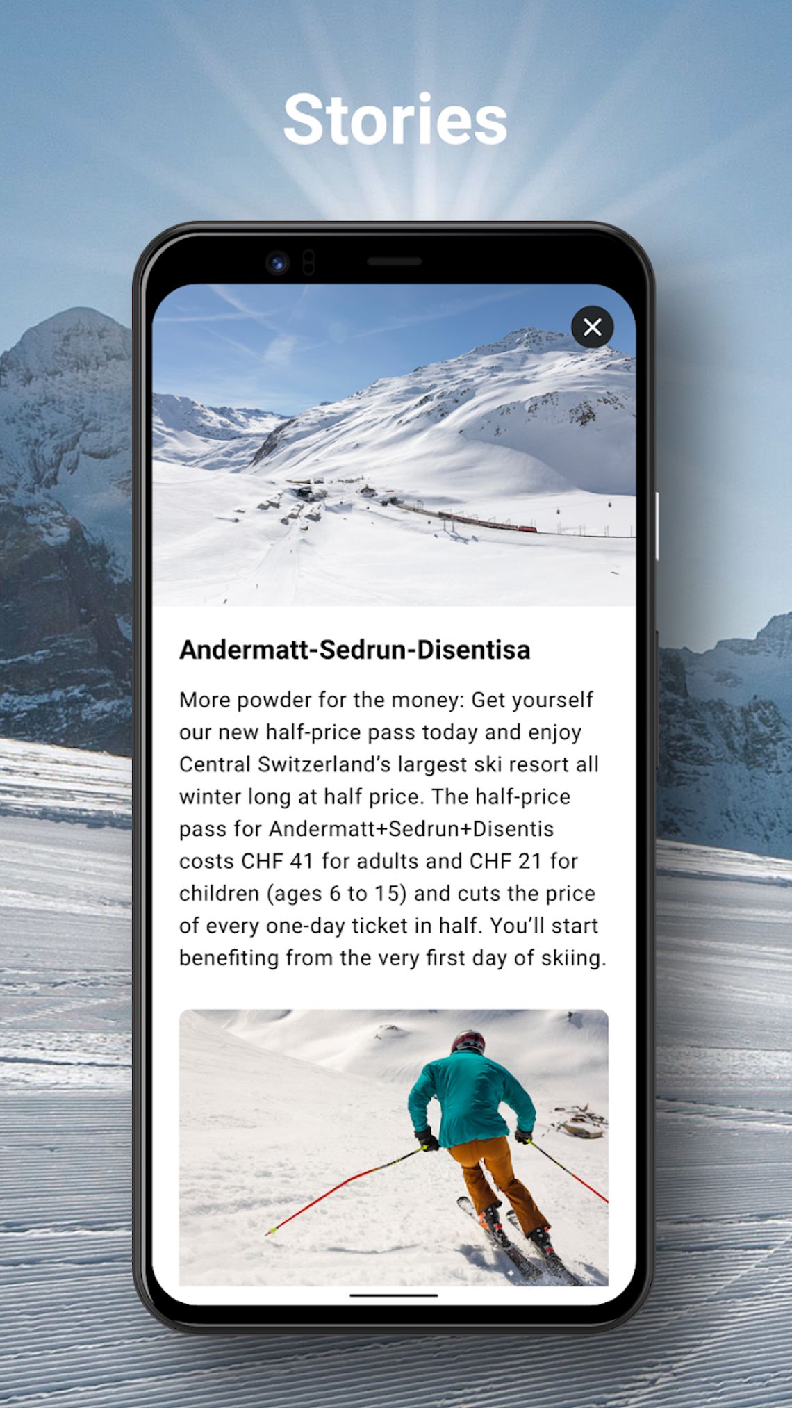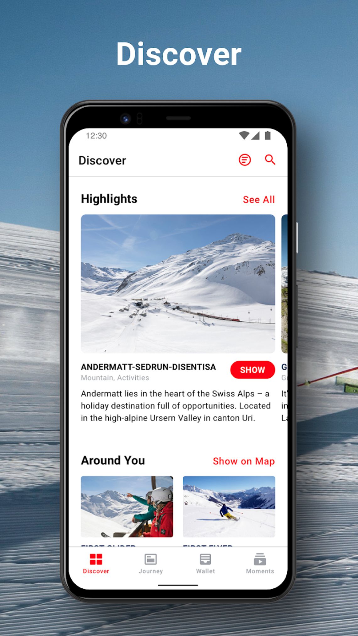 Con l'app MountainAccess hai accesso a offerte ed esperienze esclusive a Andermatt+Sedrun+Disentis. Prenota biglietti, skipass, alloggi e ristoranti o noleggia la tua attrezzatura da sci – tutto in un unico posto.