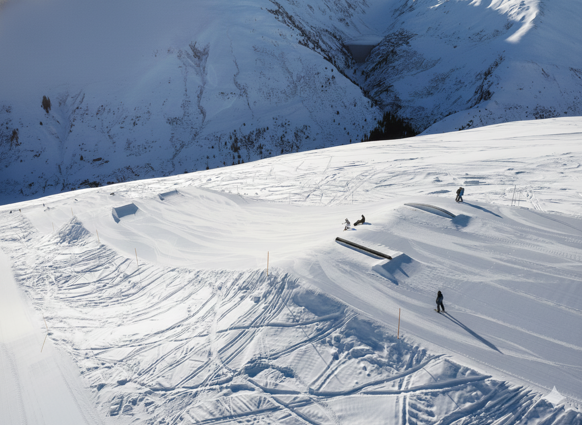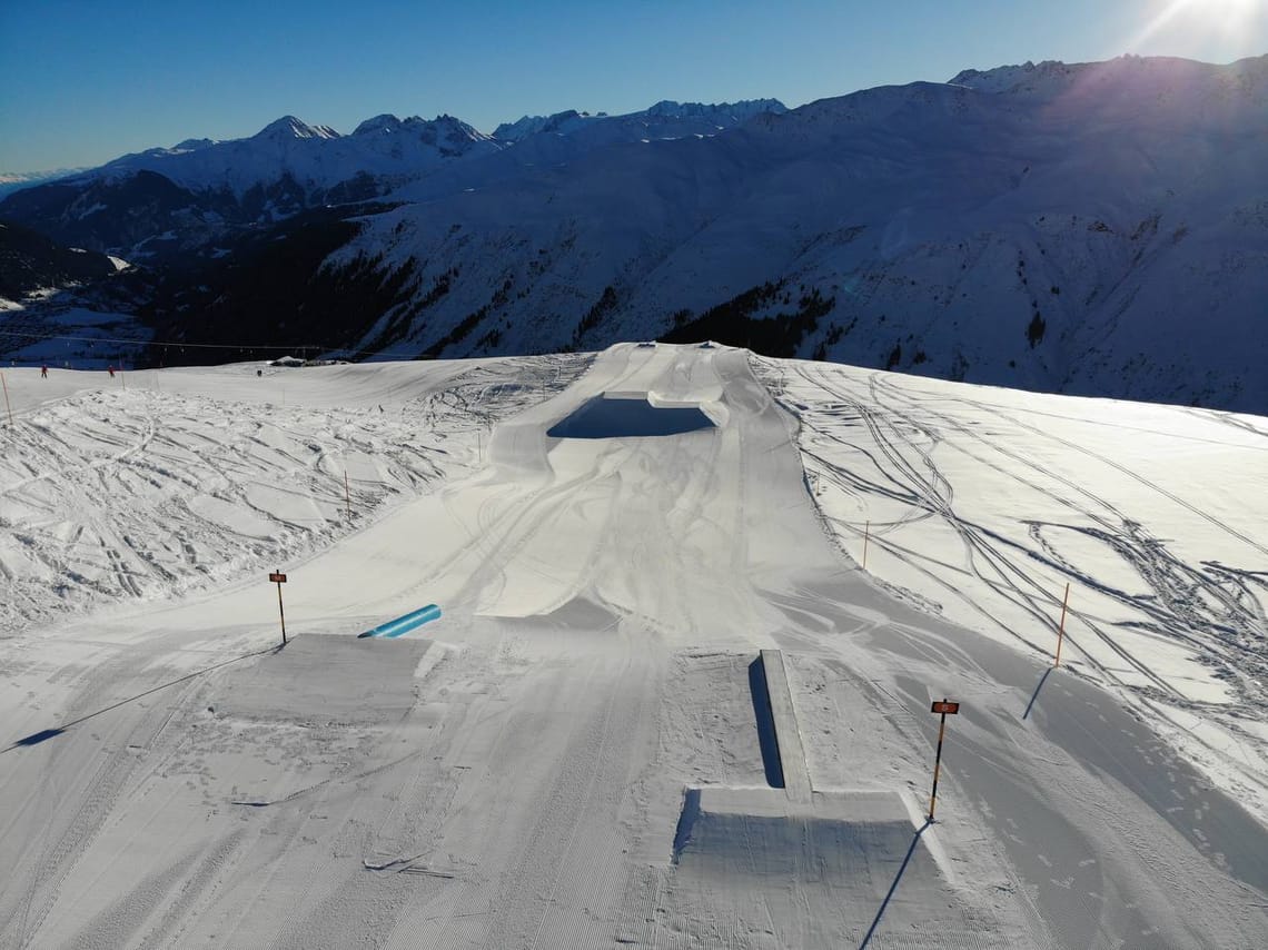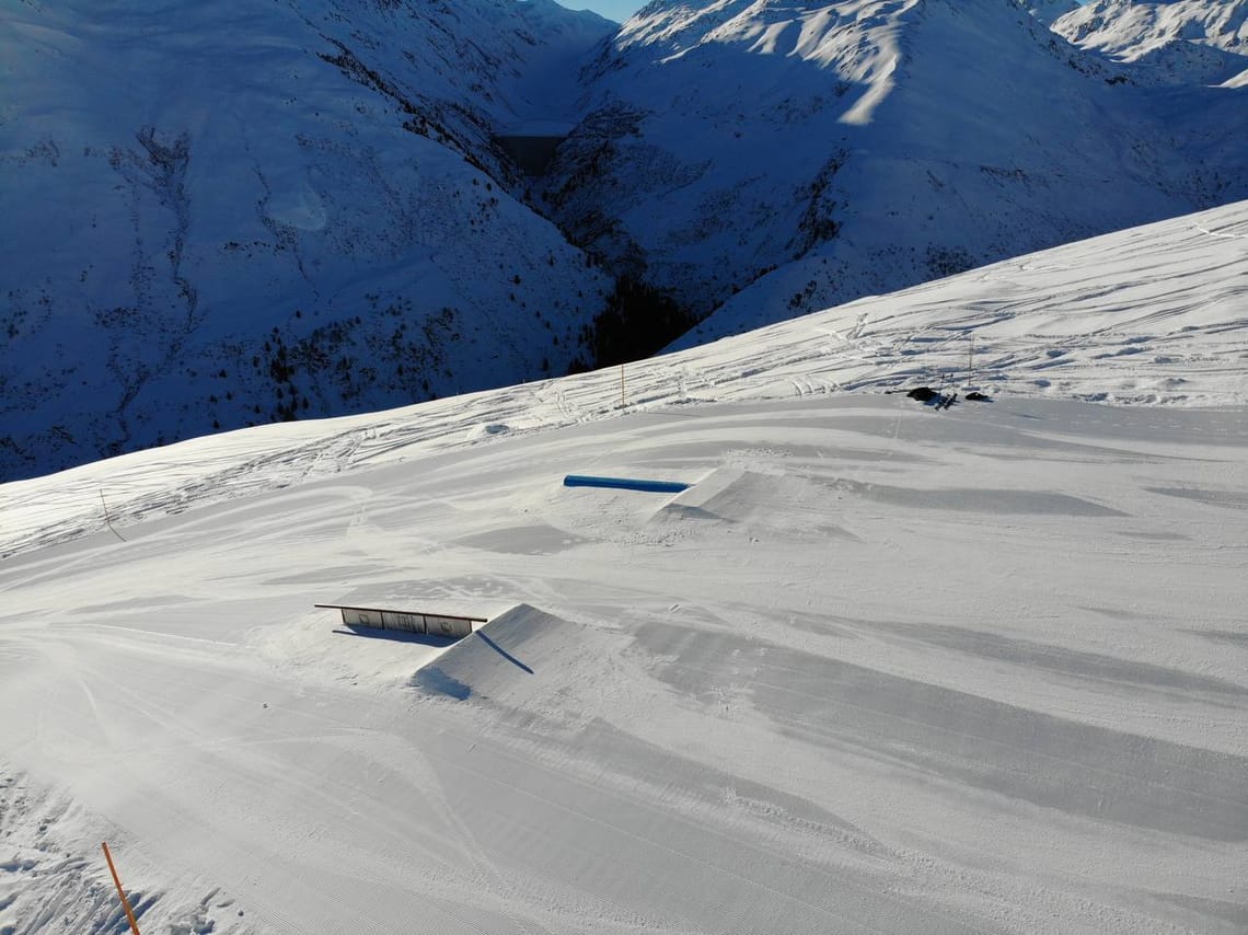 Lo snowpark è strutturato in modo chiaro e offre condizioni ideali per imparare e migliorare nuovi trick in modo controllato e sicuro.